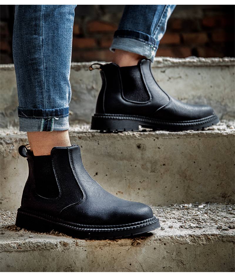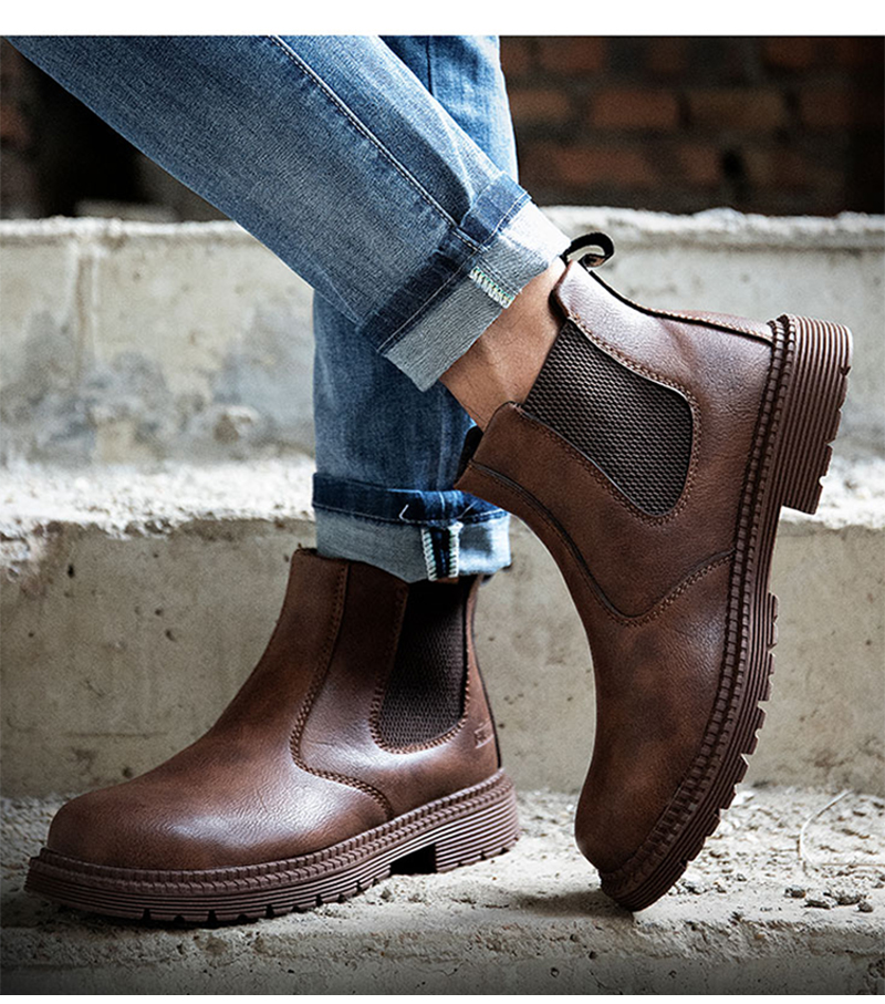 PU Leather Work Safety Boots Men's Chelsea Boots Men's Work Shoes Men's Winter Boots Men's Steel Toe Shoes